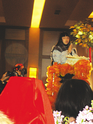 “令人吃驚的是抽獎(jiǎng)環(huán)節(jié),特等獎(jiǎng)送出三輛小轎車!”一位嘉賓透露說:“宴會(huì)估計(jì)要花掉上百萬,獎(jiǎng)項(xiàng)很多,一二等獎(jiǎng)都是翡翠飾品,三等獎(jiǎng)是10臺(tái)筆記本電腦,而且得獎(jiǎng)率很高。”愛愛隨后的一番感言讓在場的學(xué)生和家長更為震撼:“爸媽一直教育我要學(xué)會(huì)與人分享,我也希望我能夠給別人帶去快樂和幸福。人們說‘舍得’,如果要從這兩個(gè)字中選一個(gè)字,我會(huì)選擇‘舍’,因?yàn)橛小帷艜?huì)有‘得’!睈蹛蹖⑸諘(huì)上20多萬元的禮金都捐獻(xiàn)出來,還動(dòng)員父母捐出價(jià)值近50萬元的棉被棉衣,送到四川地震災(zāi)區(qū)。