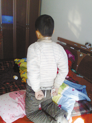 11月29日14時(shí),民警在裕華區(qū)南位村一居民區(qū)發(fā)現(xiàn)了嫌疑車輛。半小時(shí)后,涉嫌綁架的年輕男子被抓。通過從該男子身上搜出的房門鑰匙,民警在一單元房內(nèi)找到了小龍。當(dāng)時(shí),小龍被綁在床頭,嘴里塞著一只線手套,還用膠帶紙纏著,雙手后背,腳被繩子綁著。民警一邊安慰孩子,一邊解開他身上的繩索。
