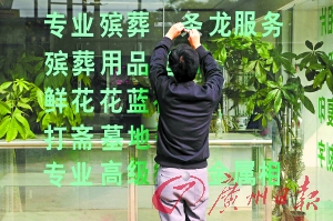 昨天開始,廣州市民政部門會同市公安、交委、衛(wèi)生、工商、物價等部門展開兩天的聯(lián)合行動,集中整治殯葬服務(wù)代理市場。檢查中發(fā)現(xiàn)殯葬服務(wù)中介公司多打出提供“一條龍辦喪服務(wù)”的口號。殯管部門表示,這是違規(guī)而且也是不可以做到的。同時,對于殯葬黑中介“宰”喪主這種雪上加霜、有背社會公德的行為,殯管部門將堅(jiān)持打擊。