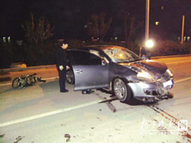 昨天凌晨,一輛大眾速騰轎車行駛到南京揚(yáng)子江大道定淮門大街路口附近,突然將一名騎助力車的保安撞飛幾十米外,保安不治身亡,助力車被卡住拖行,轎車滑行幾十米后才停下,而開車男子自稱當(dāng)時(shí)時(shí)速為70公里左右。事發(fā)后,目擊者稱肇事司機(jī)兩次在路邊嘔吐,且聞到一股酒味,面對(duì)眾人詢問,肇事司機(jī)否認(rèn)喝酒。然而昨天下午,記者獲悉,男子因交通肇事被刑事拘留,此外還涉嫌酒后駕駛。