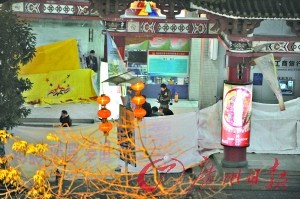 昨晚8時(shí)50分許,佛山市禪城區(qū)東方廣場(chǎng)德勝樓東南角前有近十輛警車?。在一樓某銀行營(yíng)業(yè)廳門前的臺(tái)階上,一人多高的布將這里團(tuán)團(tuán)遮圍起來(lái)。