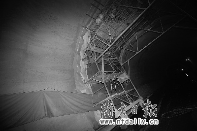 南廣高鐵8標項目部黨工委書記楊躍俊告訴記者,白云隧道單向掘進669米后,發(fā)現(xiàn)隧道內(nèi)地質(zhì)條件復雜,處于斷層和涵洞區(qū)。1月12日一次小型泥石流后,隧道停止繼續(xù)挖掘!暗谝淮文嗍骱,我們有一個應對方案,前幾天肉眼判斷此處已沒有再發(fā)現(xiàn)塌方的預兆。”