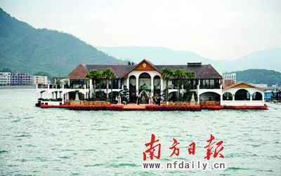 近日,深圳南澳東山灣一棟面積多達(dá)7000平方米,耗資近億元的海上別墅存在五六年之久,卻一直沒有取得海域使用權(quán)證,被指是一棟“海上違建”(見上圖)。昨天下午,該別墅主人郭奎章在其“海上皇宮”內(nèi)首次公開回應(yīng)媒體,稱該別墅是省海洋部門同意的旅游試驗(yàn)項(xiàng)目,不屬于違法建筑,也不可能拆除。