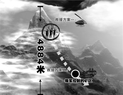 據(jù)了解,還有兩個方式走出原始秘境。一是乘坐直升機(jī),但每天如約而至的大暴雨根本沒有適合直升機(jī)飛行的條件。二是穿過當(dāng)?shù)嘏衍娍刂频牡V區(qū)。但這需要有過硬背景的探險公司與政府武裝聯(lián)合,喬裝成礦工用軍車乘夜間護(hù)送。途中還需要很大一筆費(fèi)用來打點當(dāng)?shù)氐奈溲b分子,這樣才能順利通行。這些條件缺一不可,否則,很有可能被當(dāng)?shù)胤钦溲b扣押。7名隊員一直認(rèn)為這一路徑十分冒險。但如果不能原路返回,穿越礦區(qū)就成為登山隊員走出原始秘境的一條捷徑。