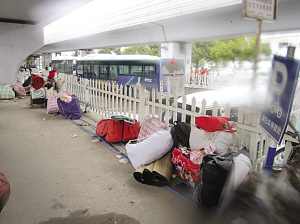 市場關(guān)門放假之后,那些滯留在門口的民工只好收拾好行囊,和其他工友聯(lián)系住處。一位安徽籍民工告訴記者,他和其他幾個老鄉(xiāng)準(zhǔn)備去另一個老鄉(xiāng)打工的工地那里暫時住兩天。放假了工地也停工,但是住的地方還是有的。而還有一些民工索性又將行李搬到了安德門地鐵站附近的高架橋下,“現(xiàn)在工作也不好找,住旅館實在太貴,我們只好再住回高架橋下!泵窆儼徇M(jìn)高架橋下后,個個哀聲嘆氣,但也有一些情緒樂觀的,跑進(jìn)了地鐵站內(nèi)打撲克取暖消遣。(記者 曹盧杰 裴睿)