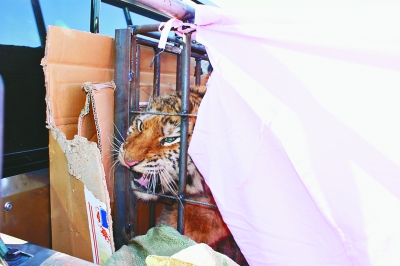 25日6時(shí)許,東方紅林業(yè)局海音山道班養(yǎng)路工韓德友家的兩條犬狂吠不止,韓德友推門查看,發(fā)現(xiàn)一只小老虎卡在柴垛夾縫中,動(dòng)彈不得,遂向上級(jí)報(bào)告。東方紅林業(yè)局局長(zhǎng)張雷立即趕赴現(xiàn)場(chǎng),組織營(yíng)救。在專家的指導(dǎo)下,經(jīng)過(guò)20多個(gè)小時(shí)的緊張施救,小老虎轉(zhuǎn)危為安,經(jīng)探查未見大礙。至26日16時(shí),小老虎在人們的精心照料下,已經(jīng)吃了兩只白條雞和一些牛肉塊,精氣神十足。