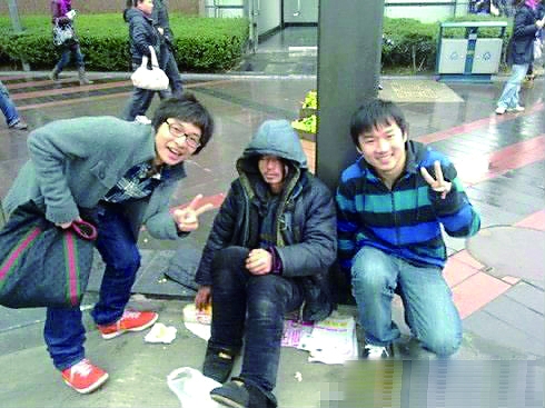 昨天(3日),網(wǎng)友們在東門口再也沒有見到“犀利哥”的身影,這讓許多關(guān)注“哥”的網(wǎng)友因?yàn)闊o意間給他造成傷害感到內(nèi)疚。而昨天東方論壇上的一張照片更讓網(wǎng)友憤怒:兩個男孩一左一右在“犀利哥”旁邊擺出“v”字笑著拍的照片。網(wǎng)友們說,看了這張照片,感到寒心。