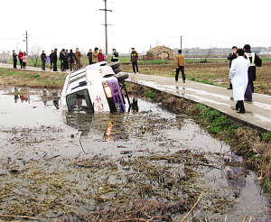 采訪中,家長(zhǎng)們幾乎異口同聲表示,平常開車的是一名何姓男子,車技很好,可出事時(shí)開車的卻是一名不相識(shí)女子。記者發(fā)現(xiàn),出事的馬甫路李家橋路段非常狹窄,僅夠一車通行,而且從不遠(yuǎn)處的水泥橋下來就是處彎道,之前又曾下過雨有點(diǎn)濕滑,可以說在這樣的路段開中巴車很具有難度。家長(zhǎng)蔣先生告訴記者,“這完全就是對(duì)孩子不負(fù)責(zé)任,這里的道路寬不過3米,很多地方根本就無法會(huì)車,而且有的路邊就是深深的水塘和田地,稍不留神就會(huì)滑下。”家長(zhǎng)吳先生更是向記者表示,他認(rèn)識(shí)那名開車女子,應(yīng)該是姓鮑,好像是做皮草生意的,她是不是拿中巴車來練手啊,說不定根本就沒駕照。