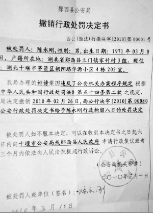 3月10日,十堰市警方公布鄖西警方跨縣拘留發(fā)帖人案復核結(jié)果。認定該案的辦理違反了公安機關(guān)辦案程序規(guī)定。隨后,鄖西縣政府和縣委書記連發(fā)網(wǎng)絡聲明,責成縣公安局對陳永剛道歉并吸取教訓。