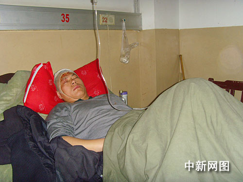 3月22日下午1時(shí)40分許,記者在阜陽(yáng)市人民醫(yī)院急救中心二樓病房里,見(jiàn)到了肇事司機(jī)董飛,他躺在病床上,旁邊坐著一女子與其聊天。當(dāng)發(fā)現(xiàn)有記者前來(lái)采訪拍照,該女子迅速離開(kāi),面對(duì)記者董飛一直不開(kāi)口說(shuō)話。隨后,病房?jī)?nèi)看守董飛的兩名警察阻止了記者采訪。