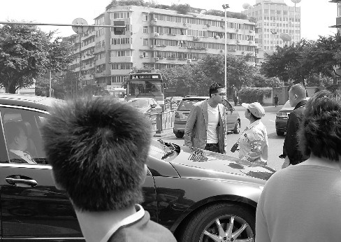 在此處執(zhí)勤的女交通勸導(dǎo)員立即上前攔住了第二輛意圖違法調(diào)頭的奔馳車。沒想到,奔馳車車主毫不理會她的阻止,不僅調(diào)過了車頭,更逼得攔在車前的勸導(dǎo)員大姐步步后退到路旁。勸導(dǎo)員只好一面撥打電話一面防止這并未上牌的奔馳車溜走。這時(shí),從車上下來一名戴墨鏡的小伙子甩下一句:‘你不就是要罰個(gè)款嘛,老子有的是錢!’”