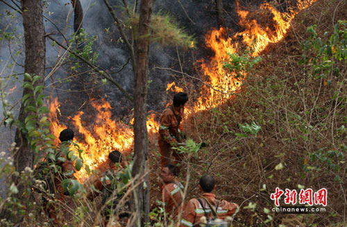 據(jù)當(dāng)?shù)卮迕窠榻B,大火是凌晨3:00左右從山梁處頂開始燃起,大火迅速蔓延開。火災(zāi)發(fā)生后,當(dāng)?shù)厝罕姄艽蛄嘶鹁娫,由于起火點(diǎn)位于山頂,加上天未亮,給撲火工作帶來很大難度,趕到現(xiàn)場的攀枝花市仁和區(qū)地方森林撲火隊(duì)及森林武警60余人摸黑奮戰(zhàn),8:00左右,山火被成功控制。但由于當(dāng)?shù)匾延?87天無降雨過程,山上草木十分干燥。16時(shí)許,火星再次復(fù)燃引發(fā)山火,過火面積超過上百公頃。記者在現(xiàn)場看到,高高的大山,經(jīng)山火一燒后地面被披上了一層黑色的外衣,顯得十分猙獰。