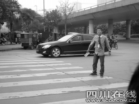 昨日是小長(zhǎng)假第一天,雙橋路的車(chē)流量并不多,但這個(gè)小伙子卻在二環(huán)路口忙了一天,他比劃著夸張的交警手勢(shì),指揮著交通,看見(jiàn)過(guò)馬路的老人和小孩還會(huì)上去扶一把。