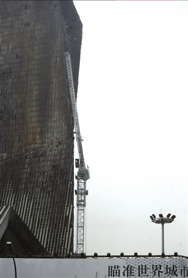 昨天,記者在央視大樓新址看到,過火的北配樓工地上已搭起塔吊。北京城建集團相關(guān)項目負責人透露,他們正在為過火樓復工做前期準備。