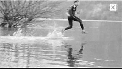 網(wǎng)上文章稱:“3名外國小伙在一個(gè)視頻里把中國武俠小說里的輕功 ‘水上漂’展現(xiàn)得淋漓盡致。視頻中,他們在葡萄牙一個(gè)湖上賽跑,在水面上奔跑了50多米后才落水。他們聲稱這是一種挑戰(zhàn)地心引力理論的新型極限運(yùn)動(dòng)。視頻上傳到某網(wǎng)站后,在短短兩周內(nèi)吸引了超過200多萬人次瀏覽。視頻看起來可信度極高,不少質(zhì)疑它是騙局的網(wǎng)友也不得不承認(rèn),它拍得很高明!