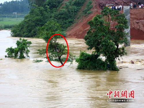 中新網(wǎng)南寧6月3日電 (王剛 韋龍貴)暴雨襲擊廣西,廣西玉林一名男子帶著小狗不斷往高處逃跑,最后爬樹避水求生,不斷上漲的水位把他逼到了樹頂端。所幸玉林消防官兵聞?dòng)嵹s至,此時(shí)男子和狗已被圍困了9個(gè)多小時(shí)。