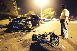 商務(wù)車司機錢某對警方說,事發(fā)時,他駕車從漢中門大橋由西向東行駛,到了高架橋下向左拐彎準備進入虎踞路時,突然從東邊疾速駛來了一輛寶馬跑車,他還沒有來得及反應(yīng),兩車就撞到一起了!皩Σ黄穑也辉摼坪篑{車,我錯了,今晚與幾個朋友在一起,喝了兩瓶啤酒,寶馬跑車是我開的,當時車上就我一個人!睂汃R跑車司機見證人眾多,已經(jīng)無法抵賴,便承認了肇事經(jīng)過。他說,當時他并沒有飆車,就是車速快了點,到了漢中門廣場高架橋下,他突然看到前面有車子,想剎車避讓,但已來不及了。