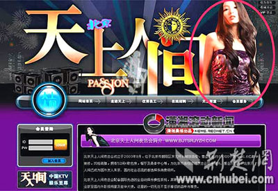 上月,北京天上人間被查封后,網(wǎng)民紛紛上網(wǎng)了解天上人間更多信息。上月22日,有網(wǎng)友點(diǎn)開天上人間官網(wǎng),發(fā)現(xiàn)彤彤的照片竟被掛在首頁(yè)(如圖)。該網(wǎng)友當(dāng)即在貓撲網(wǎng)發(fā)帖爆料,并迅速引起網(wǎng)友廣泛關(guān)注。