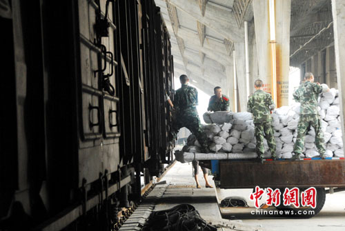 這次救災(zāi)物資緊急調(diào)運(yùn)任務(wù)的順利完成,得到了武漢鐵路局、武警湖北總隊(duì)一支隊(duì)的大力支持。鐵路局在2小時(shí)內(nèi)就完成了車皮的配空,并運(yùn)送到了指定地點(diǎn);武警總隊(duì)出動(dòng)了300多名官兵,20多臺(tái)卡車幫助搶運(yùn)。在多方的共同努力下,5000頂救災(zāi)帳篷經(jīng)過(guò)不到10個(gè)小時(shí)的緊張裝運(yùn),提前發(fā)車。