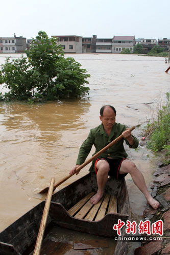 中新網(wǎng)撫州6月22日電(張見悅 艾永全 何柳斌)江西省第二大河撫河決堤之后,當(dāng)?shù)鼐用衽c各處趕到的抗洪大軍一道,展開生死救援,在重災(zāi)區(qū)羅針鎮(zhèn)梅家渡村,一位中年男子用自己家的小舢板來回?cái)?shù)十趟,將100多鄉(xiāng)親從澤國中送到了公路高地。