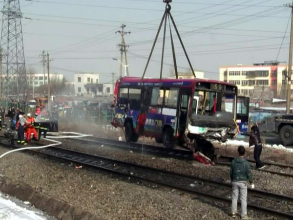 實拍:烏魯木齊列車公交相撞現(xiàn)場 公交被吊走