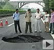 4月12日20時(shí)40分,上海一二八紀(jì)念路近共和新路中建二局寶山萬達(dá)廣場發(fā)生一起道路塌陷事故。記者拍攝遭阻攔。