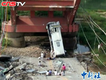 我就在門口站著,正好我和完面家里很熱,聽見橋面上咚咚咚的四五聲響,過去看了一下不得了,橋斷了, 就這樣的情況,然后車子摔倒地上。好像是那個變速箱吧,機油變速箱掉到地上了。那個車子車身掉到地上了。