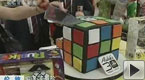同期:主持人(“太古廣場杯”中國魔方挑戰(zhàn)賽10人挑戰(zhàn)最短時(shí)間內(nèi)復(fù)原1000個(gè)魔方最后用時(shí)是54分15秒94)