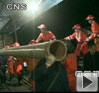 24日中午,記者在現場看到救援人員正在緊張的作業(yè)。救援人員正準備下井架鋪設排水管道,有礦車在現場運輸排水管道。另一邊的排水管道,正在從井下往外排水。
