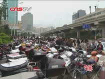 解說詞:隨后記者來到重慶市主城區(qū)兩江交匯處,看到滾滾江水使得江面寬闊了不少。朝天門廣場上、江邊都擠滿了前來觀潮的上千市民,手捧相機記錄此次洪峰過境。許多市民紛紛表示,他們是趁著工作的午休間隙來看這30年一遇的洪峰。