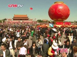 中國(guó)民眾天安門(mén)廣場(chǎng)慶賀祖國(guó)62歲生日