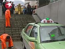 上海出租車誤闖人行地道 沖下臺(tái)階幸未傷人