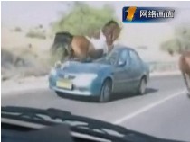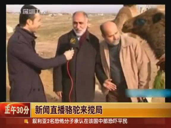 實(shí)拍國外電視新聞直播中駱駝攪局