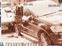玉溪路高架橋上一輛面包車(chē)在行駛當(dāng)中油箱掉了下來(lái),然后車(chē)輛燃起大火。