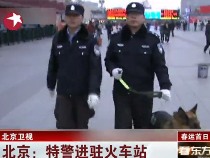 北京鐵路警方派駐特警警犬全副武裝維護(hù)治安
