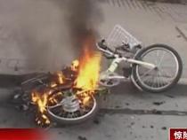 美女騎電動(dòng)車 電池爆炸如子彈齊射