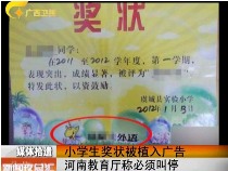 小學(xué)生獎(jiǎng)狀植入廣告 河南教育廳稱必須叫停
