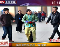 南京高鐵車(chē)站現(xiàn)“穿越男”