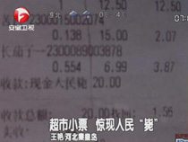 超市小票居然印著人民“斃”