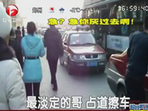 最淡定的哥 占道擦車