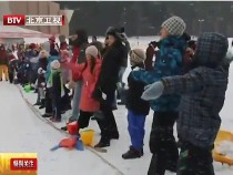拉脫維亞兒童不畏嚴(yán)寒參加趣味扔雪球比賽