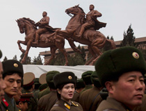 朝鮮已故領(lǐng)導人金日成與金正日銅像揭幕