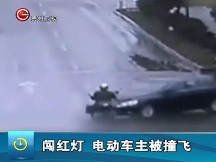 實(shí)拍:電動車主闖紅燈 電動車粉碎人被撞飛