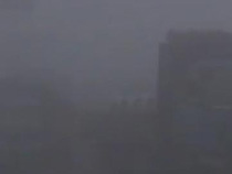 四川樂山遭遇大霧天氣 大貨車排隊(duì)