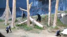 動物園黑猩猩持棍斗毆 現(xiàn)場激烈