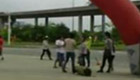 監(jiān)拍:油罐車撞倒加油機 汽油灑遍地