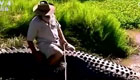 老人身騎1000公斤鱷魚玩耍