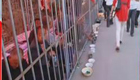 【解說】下午3時(shí),在男子60米麻袋搬運(yùn)糧食比賽賽道前,所有選手都做著賽前的準(zhǔn)備,隨著發(fā)令槍的響起,4名參賽選手拿起麻袋以最快速度跑到距離起點(diǎn)30米的沙袋前,迅速將沙袋裝進(jìn)麻袋后,又返回到起點(diǎn),接著又跑到60米外將另外的沙袋裝進(jìn)麻袋里,返回到起點(diǎn)的三輪車前,然后用三輪車載著沙袋沖刺到終點(diǎn)。一個(gè)回合下來,選手們?cè)缫咽菤獯跤酢?img src=http://i4.chinanews.com/shipin/2011/quanbu.jpg id=dakai />