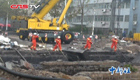 【解說(shuō)】事故現(xiàn)場(chǎng)因爆炸造成的深坑,最深處距離原路面超過(guò)3米,深坑內(nèi)積水嚴(yán)重,影響了搜救的進(jìn)行。