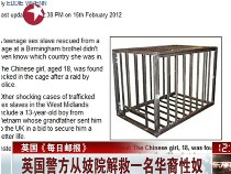 據(jù)英國《每日郵報》2月15日報道,英國警方突襲伯明翰市一家妓院時,解救出一名被關(guān)在籠子里的18歲華裔女性奴。